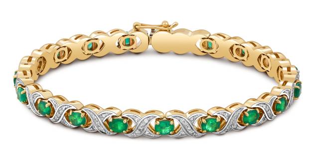 Браслет из жёлтого золота с бриллиантами и изумрудами (050831)