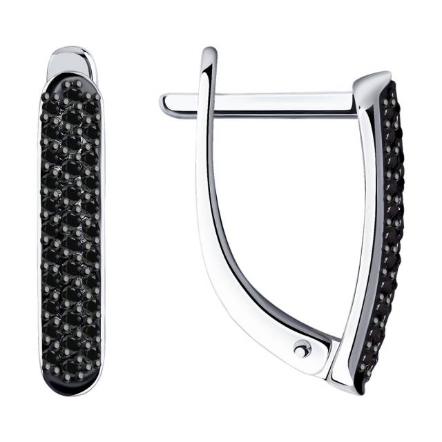 Серьги из белого золота с чёрными бриллиантами (042925)