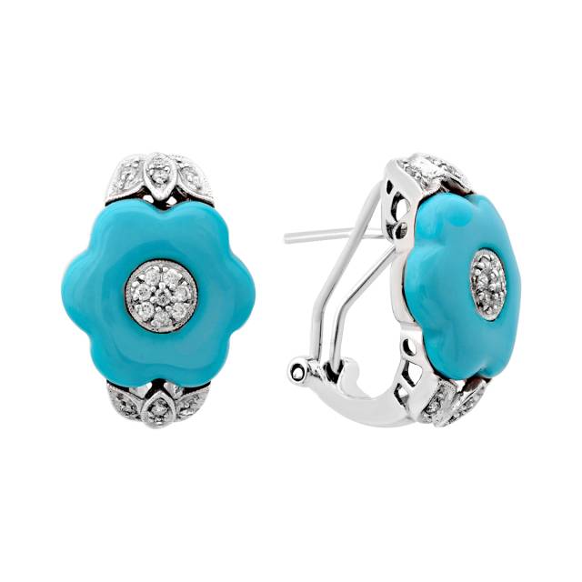 Кольцо из белого золота с бриллиантами и бирюзой (017563)