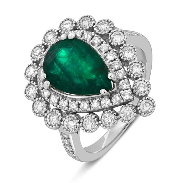 Кольцо из белого золота с бриллиантами и изумрудом (047591)