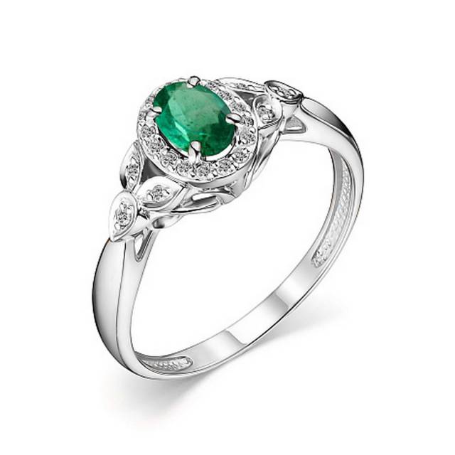 Кольцо из белого золота с бриллиантами и изумрудом (048995)