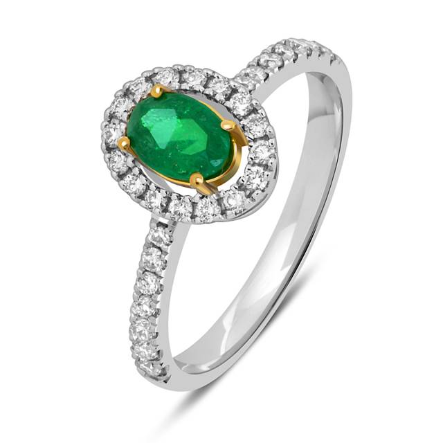 Кольцо из белого золота с бриллиантами и изумрудом (049570)