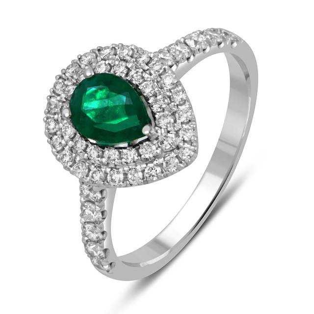 Кольцо из белого золота с бриллиантами и изумрудом (052433)