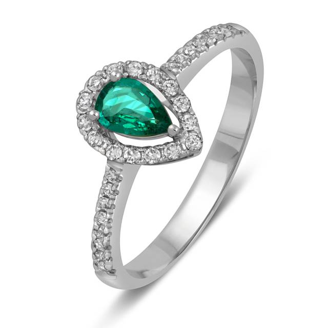 Кольцо из белого золота с бриллиантами и изумрудом (052434)
