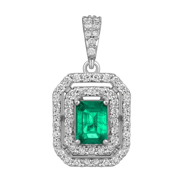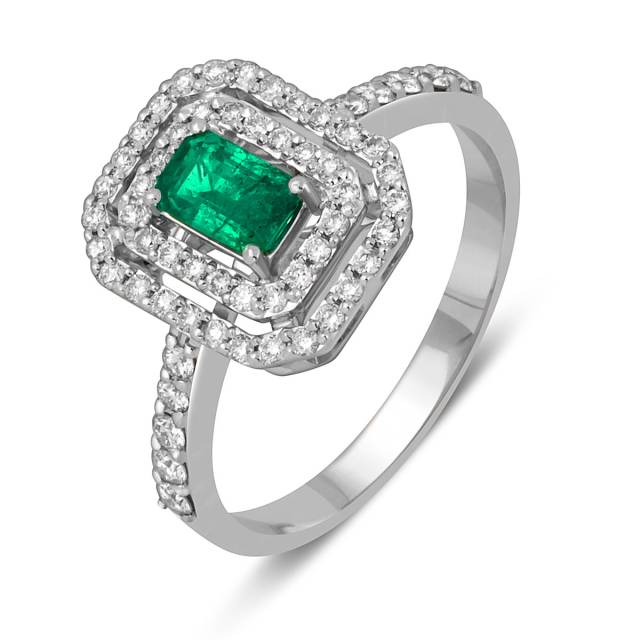 Кольцо из белого золота с бриллиантами и изумрудом (055057)