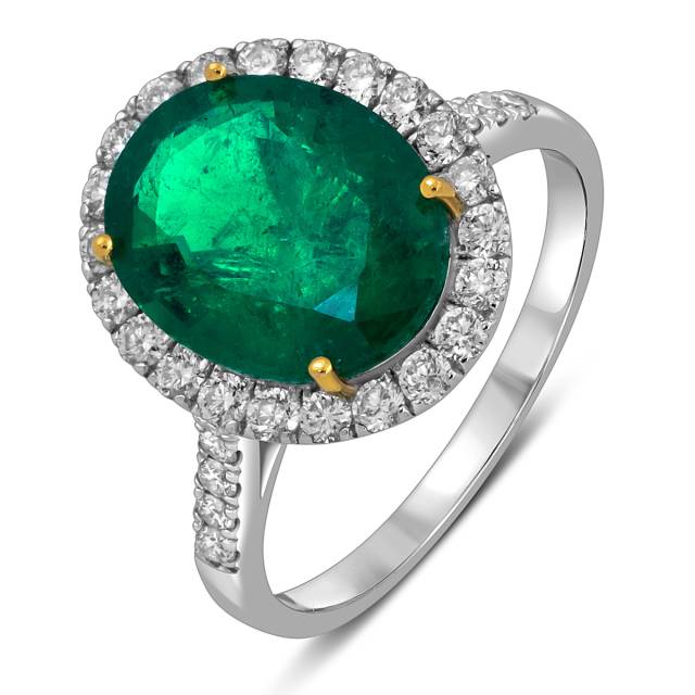 Кольцо из белого золота с бриллиантами и изумрудом (055068)