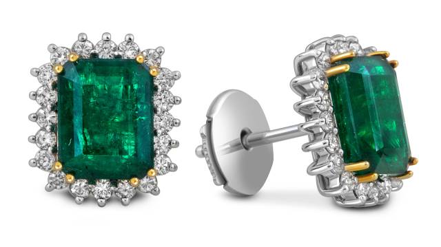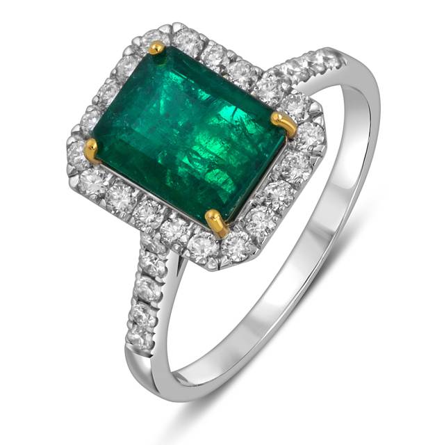 Кольцо из белого золота с бриллиантами и изумрудом (055073)