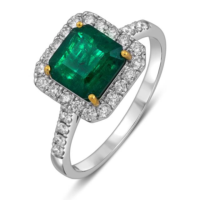 Кольцо из белого золота с бриллиантами и изумрудом (055076)