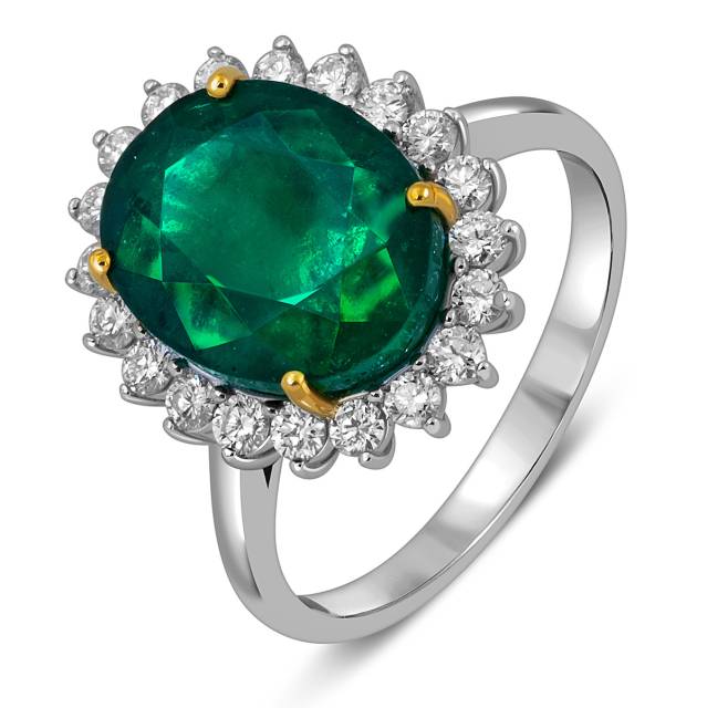 Кольцо из белого золота с бриллиантами и изумрудом (055081)