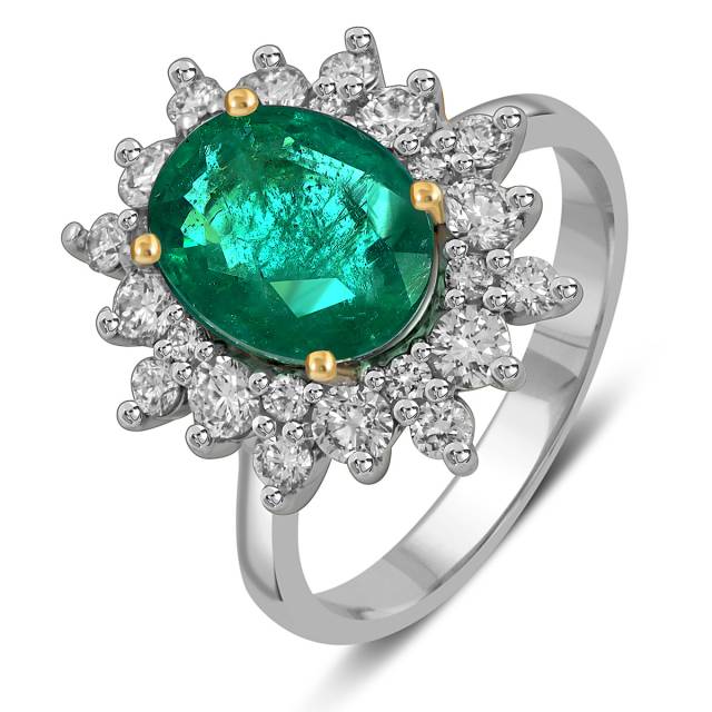 Кольцо из белого золота с бриллиантами и изумрудом (055554)
