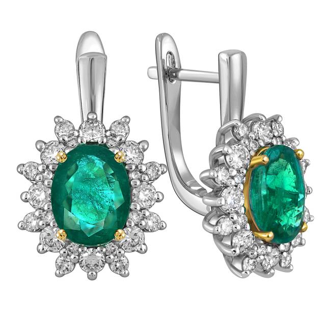 Серьги из белого золота с бриллиантами и изумрудами (055600)