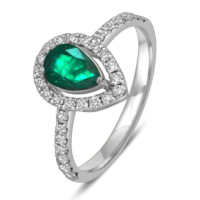 Кольцо из белого золота с бриллиантами и изумрудом (055728)