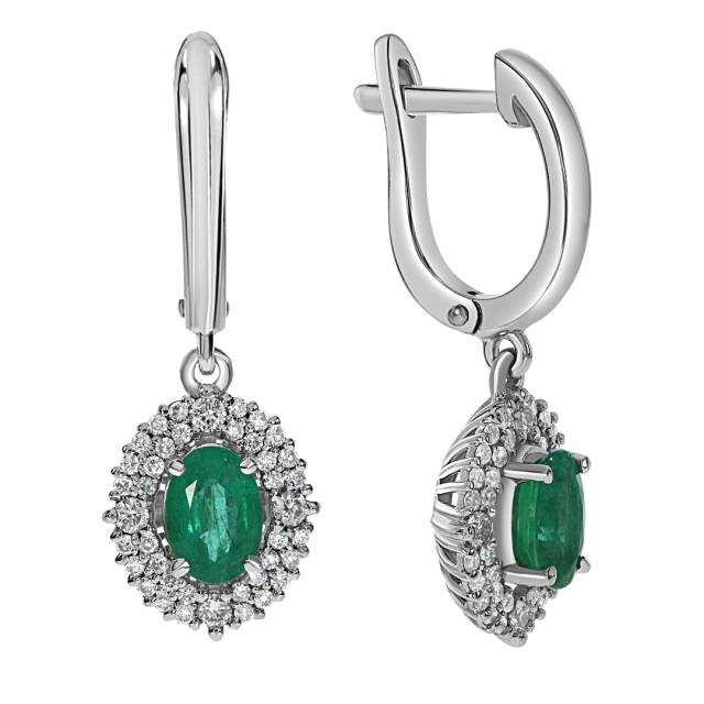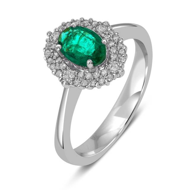 Кольцо из белого золота с бриллиантами и изумрудом (062542)