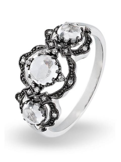 Кольцо из белого золота с бриллиантами и кварцами (012138)