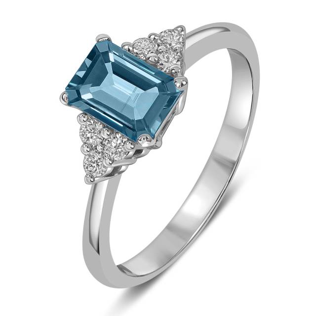 Кольцо из белого золота с бриллиантами и лондон топазом (059127)