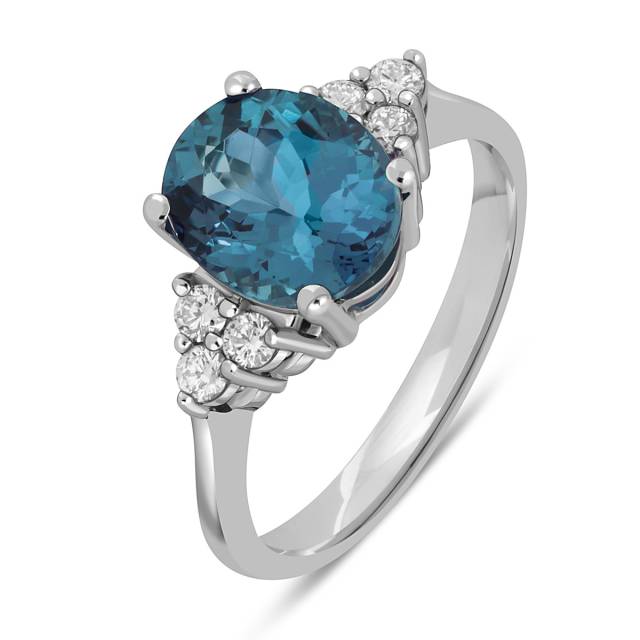 Кольцо из белого золота с бриллиантами и лондон топазом (060510)