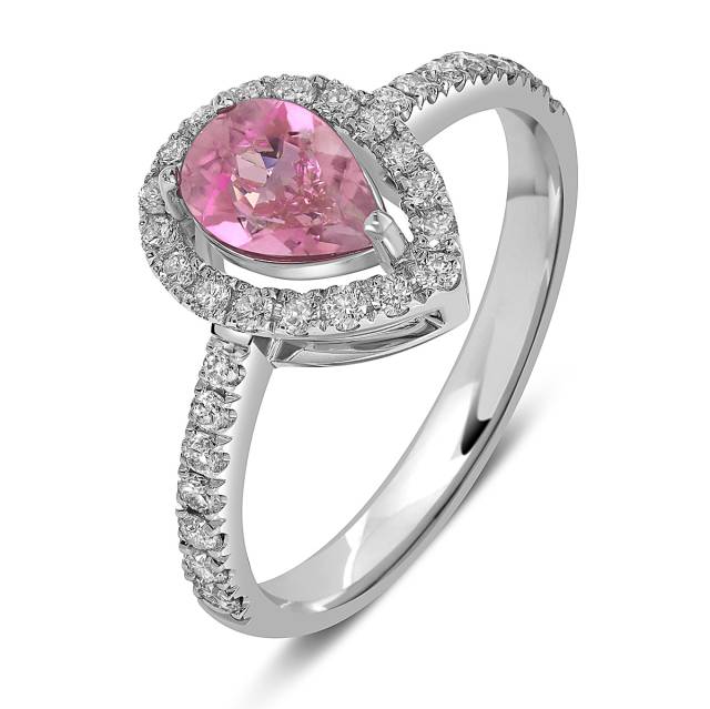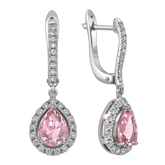 Кольцо из белого золота с бриллиантами и морганитом (059191)