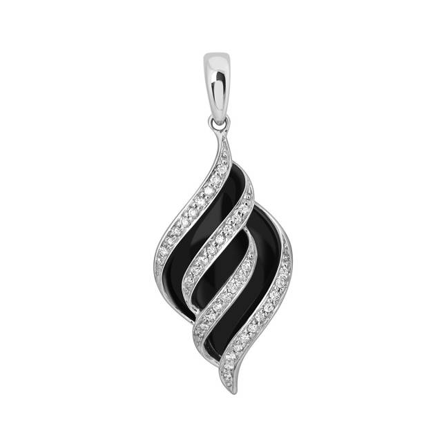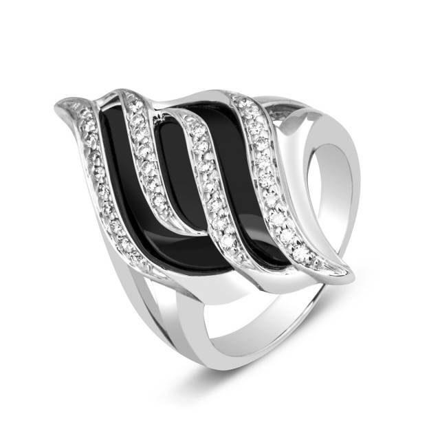 Кольцо из белого золота с бриллиантами и ониксом (013738)