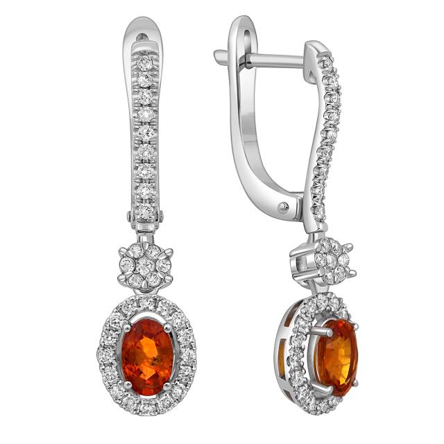 Кольцо из белого золота с бриллиантами и оранжевым сапфиром (052579)