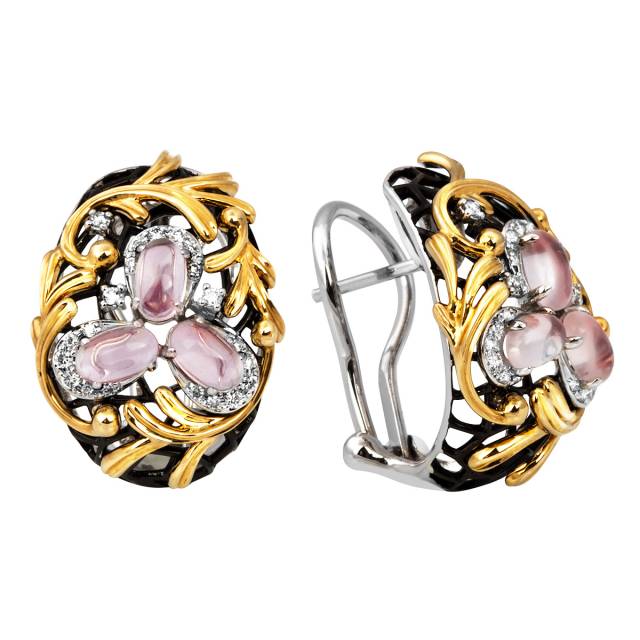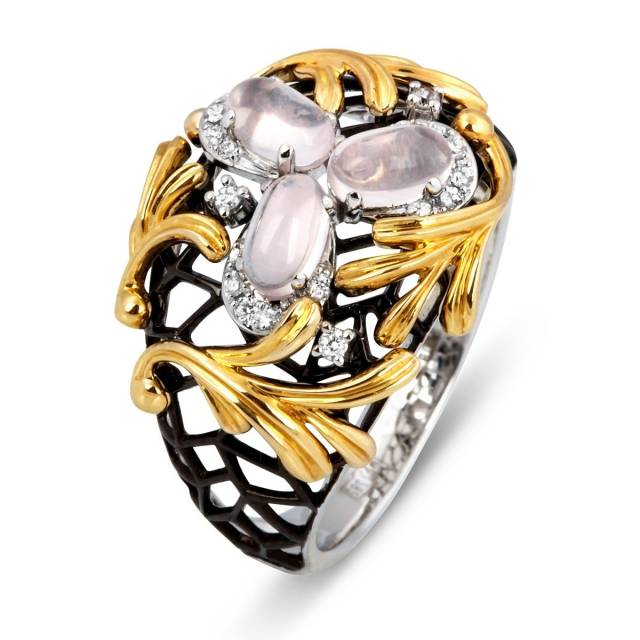 Кольцо из белого золота с бриллиантами и розовым кварцем (011065)