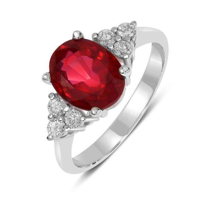 Кольцо из белого золота с бриллиантами и рубином (046925)