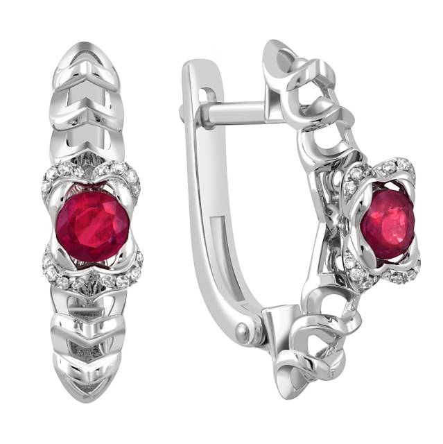 Кольцо из белого золота с бриллиантами и рубином (047810)