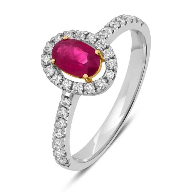 Кольцо из белого золота с бриллиантами и рубином (049875)
