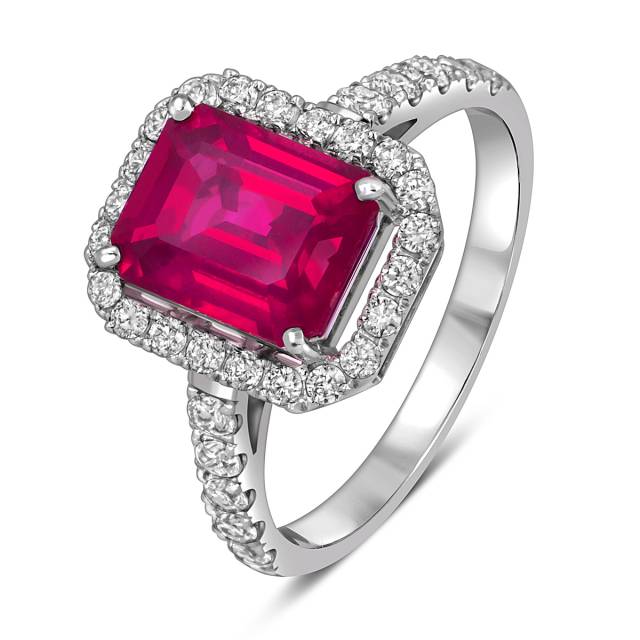 Кольцо из белого золота с бриллиантами и рубином (055089)