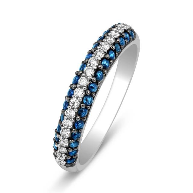 Кольцо из белого золота с бриллиантами и сапфирами (001121)