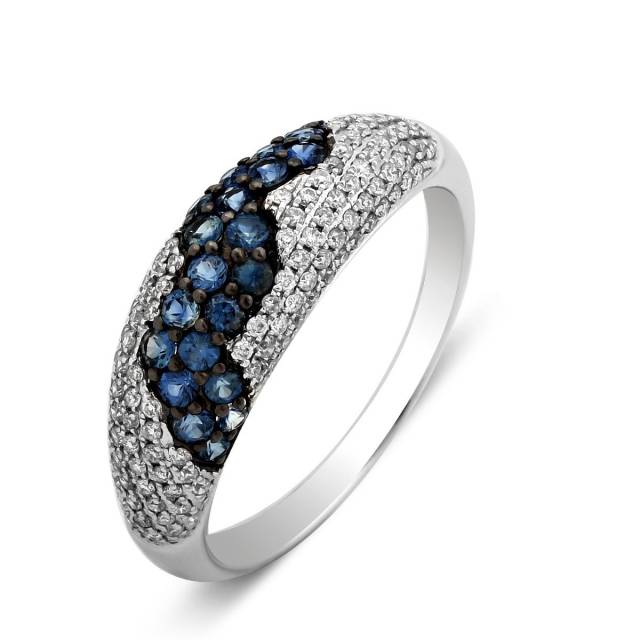 Кольцо из белого золота с бриллиантами и сапфирами (012783)