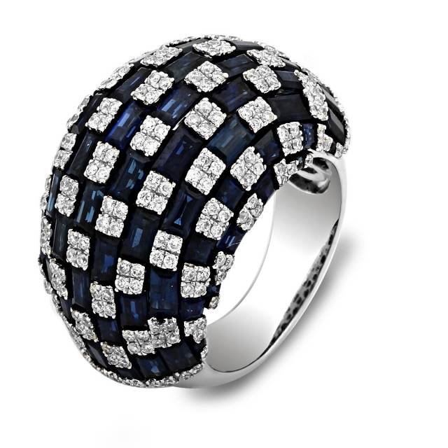 Кольцо из белого золота с бриллиантами и сапфирами (019979)