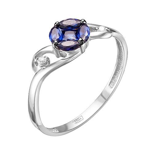 Кольцо из белого золота с бриллиантами и сапфирами (040016)