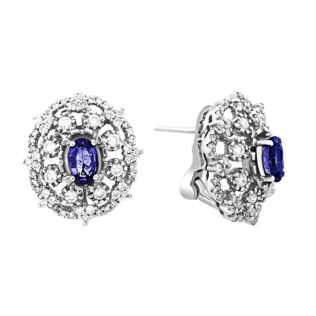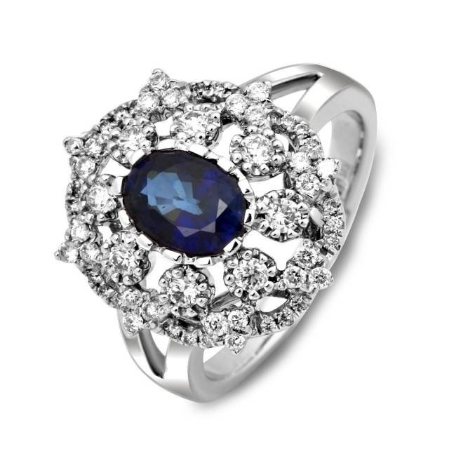 Кольцо из белого золота с бриллиантами и сапфиром (003200)