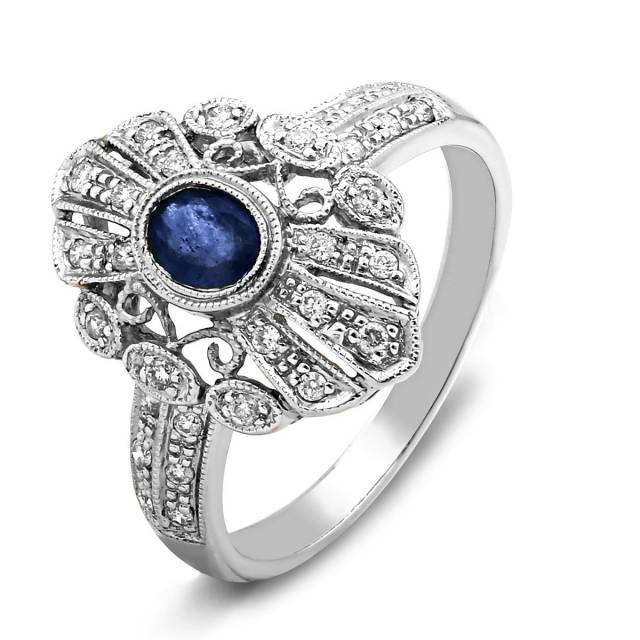 Кольцо из белого золота с бриллиантами и сапфиром (017997)