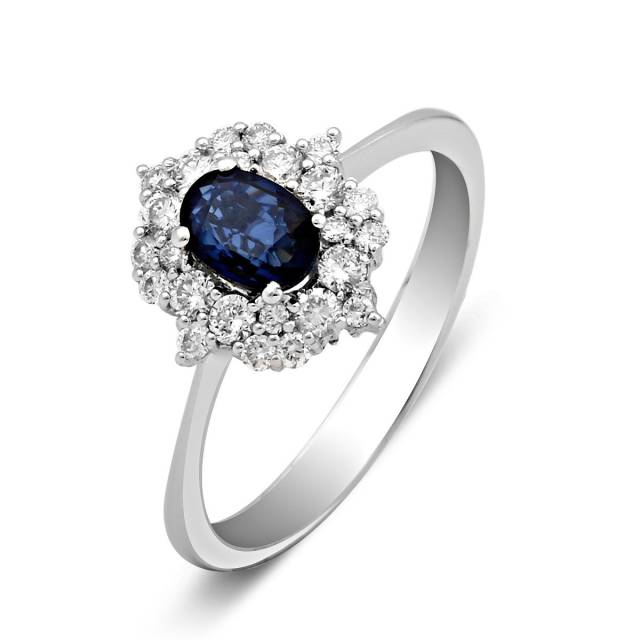 Кольцо из белого золота с бриллиантами и сапфиром (025277)