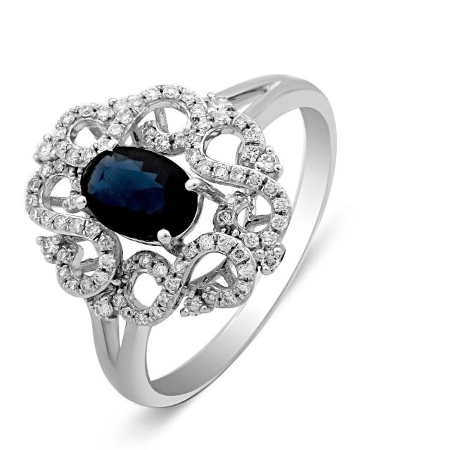 Кольцо из белого золота с бриллиантами и сапфиром (025923)