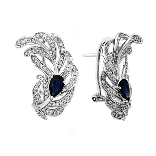 Кольцо из белого золота с бриллиантами и сапфиром (025931)