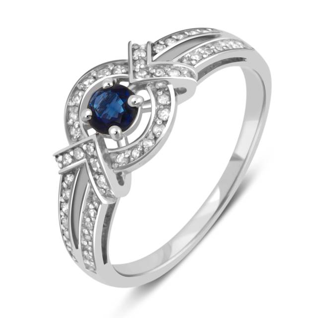 Кольцо из белого золота с бриллиантами и сапфиром (028527)