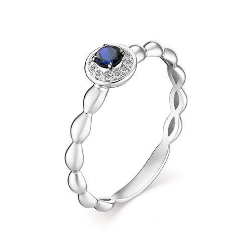 Кольцо из белого золота с бриллиантами и сапфиром (032829)