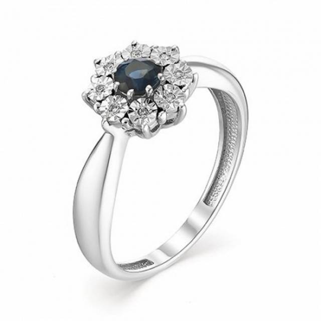 Кольцо из белого золота с бриллиантами и сапфиром (035572)
