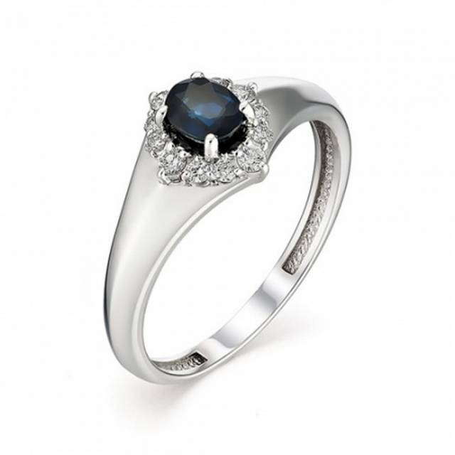 Кольцо из белого золота с бриллиантами и сапфиром (036175)