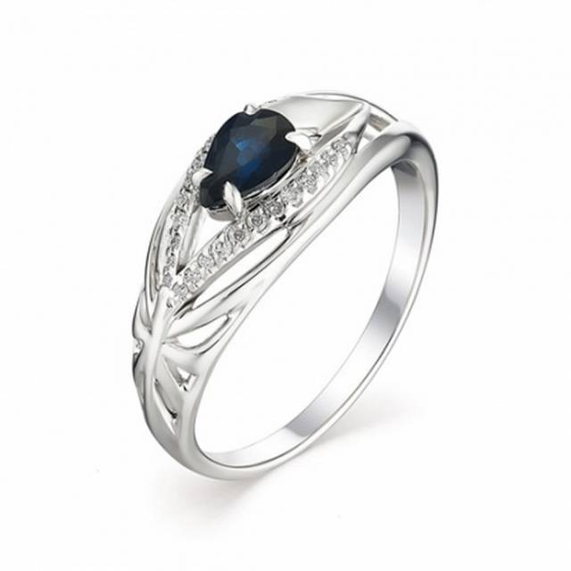 Кольцо из белого золота с бриллиантами и сапфиром (036180)