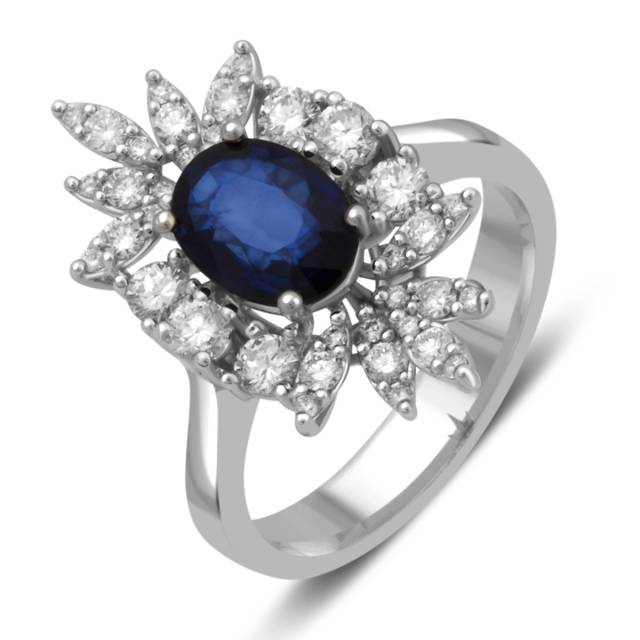 Кольцо из белого золота с бриллиантами и сапфиром (038163)