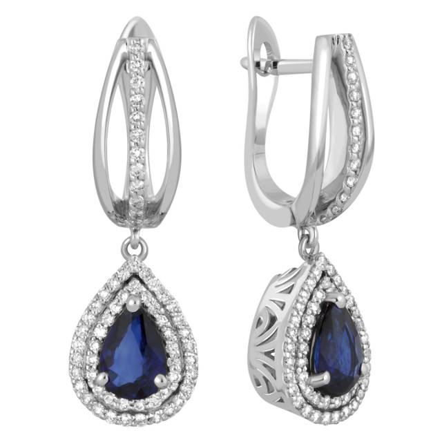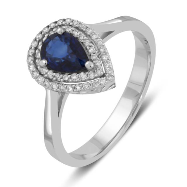 Кольцо из белого золота с бриллиантами и сапфиром (039211)