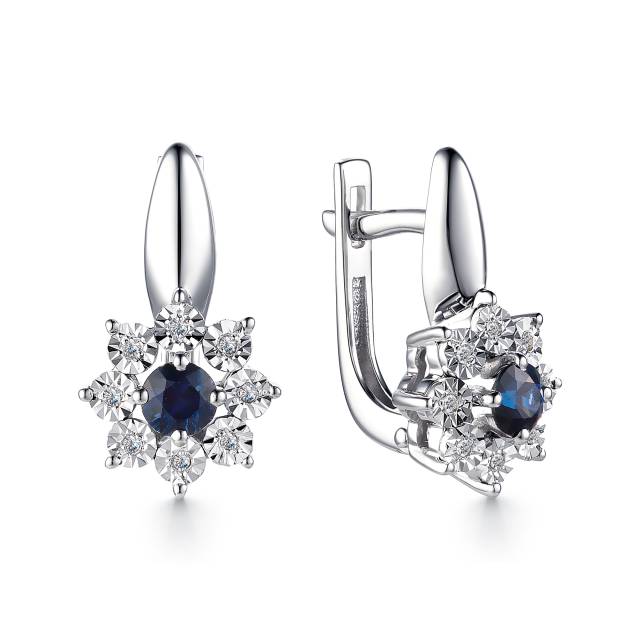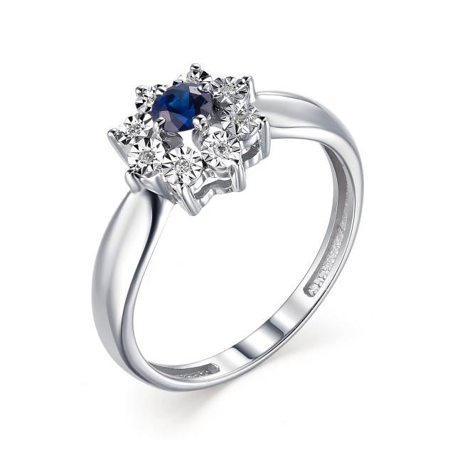 Кольцо из белого золота с бриллиантами и сапфиром (039471)