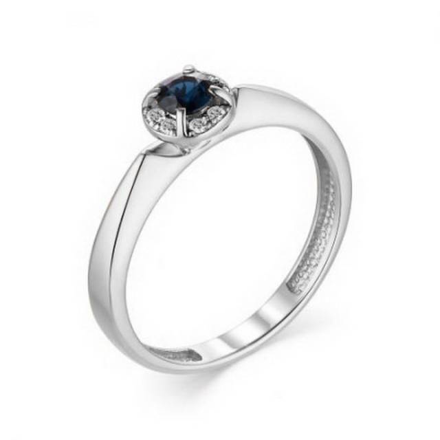 Кольцо из белого золота с бриллиантами и сапфиром (040818)