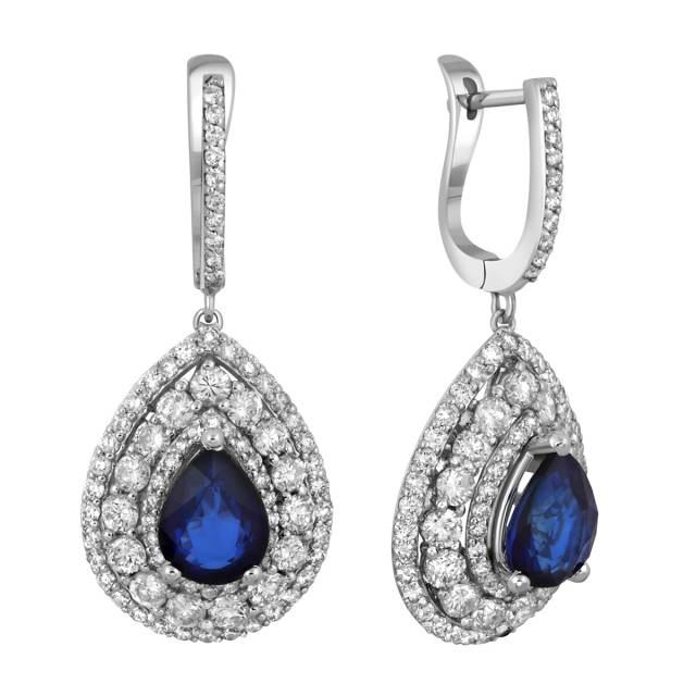 Кольцо из белого золота с бриллиантами и сапфиром (040877)