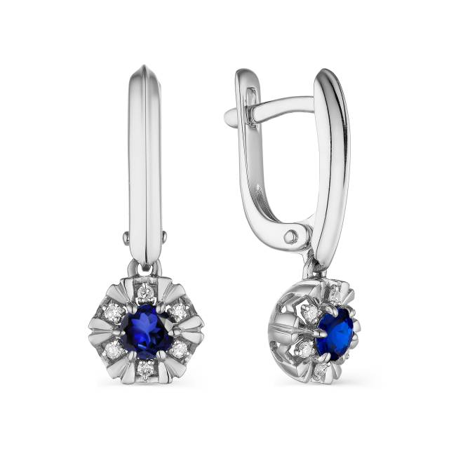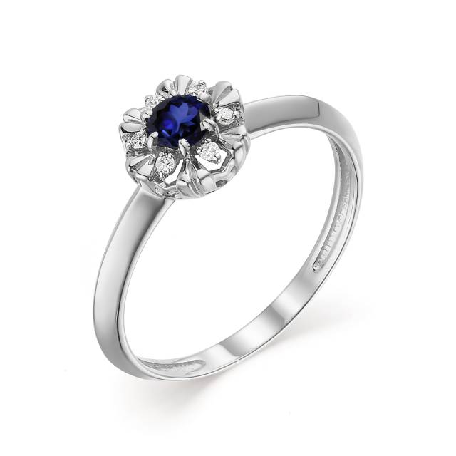 Кольцо из белого золота с бриллиантами и сапфиром (041866)