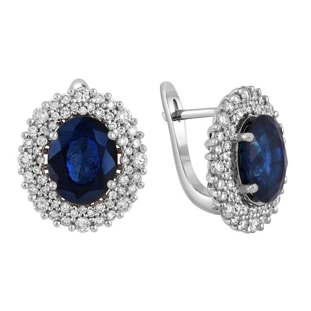 Кольцо из белого золота с бриллиантами и сапфиром (045595)