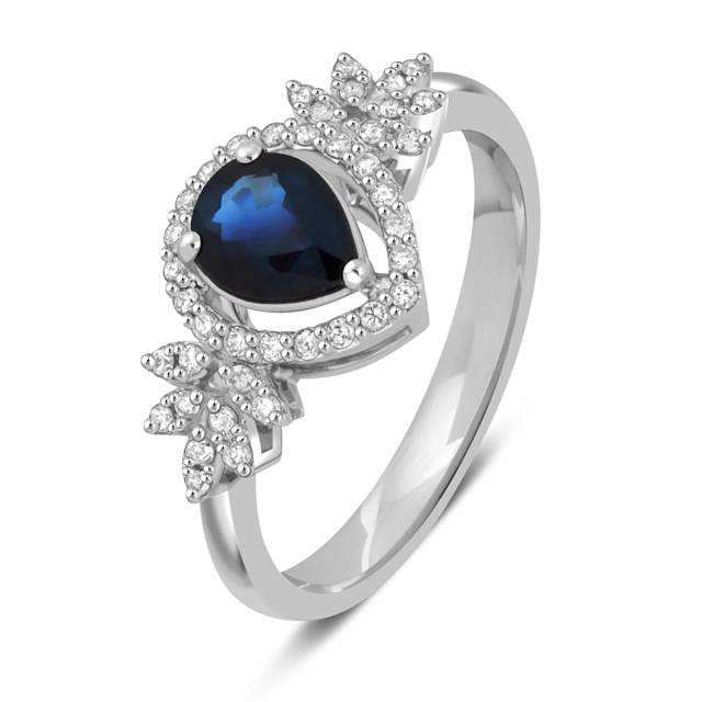 Кольцо из белого золота с бриллиантами и сапфиром (046115)